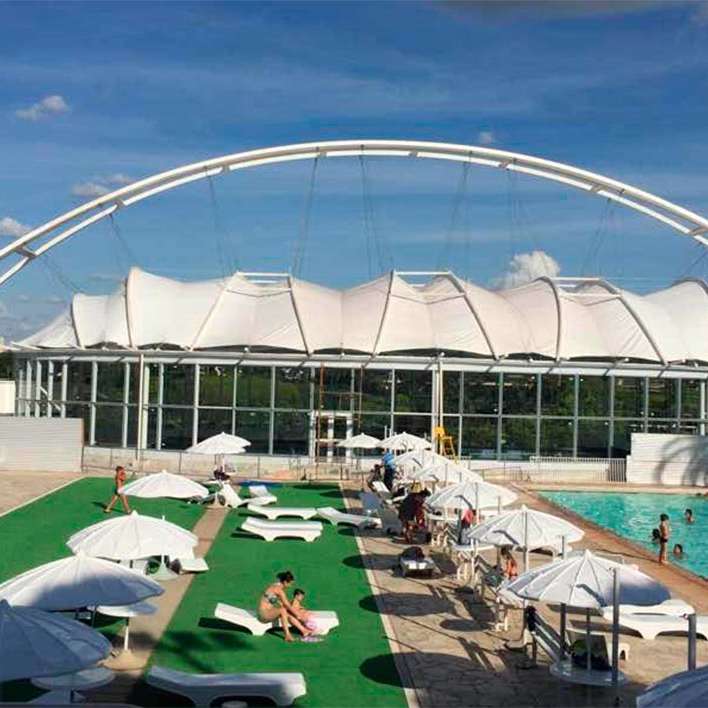 O aquecimento da água é feito por trocadores de calor que substituíram a antiga caldeira elétrica proporcionando substancial economia para a entidade. O ponto alto do projeto, no entanto, é a cobertura. Construída em manta tensionada, material utilizado em grandes arenas esportivas ao longo do mundo, mas pouco conhecida no Brasil. Além da beleza, proporcionou um desenho diferenciado e versatilidade da cobertura.