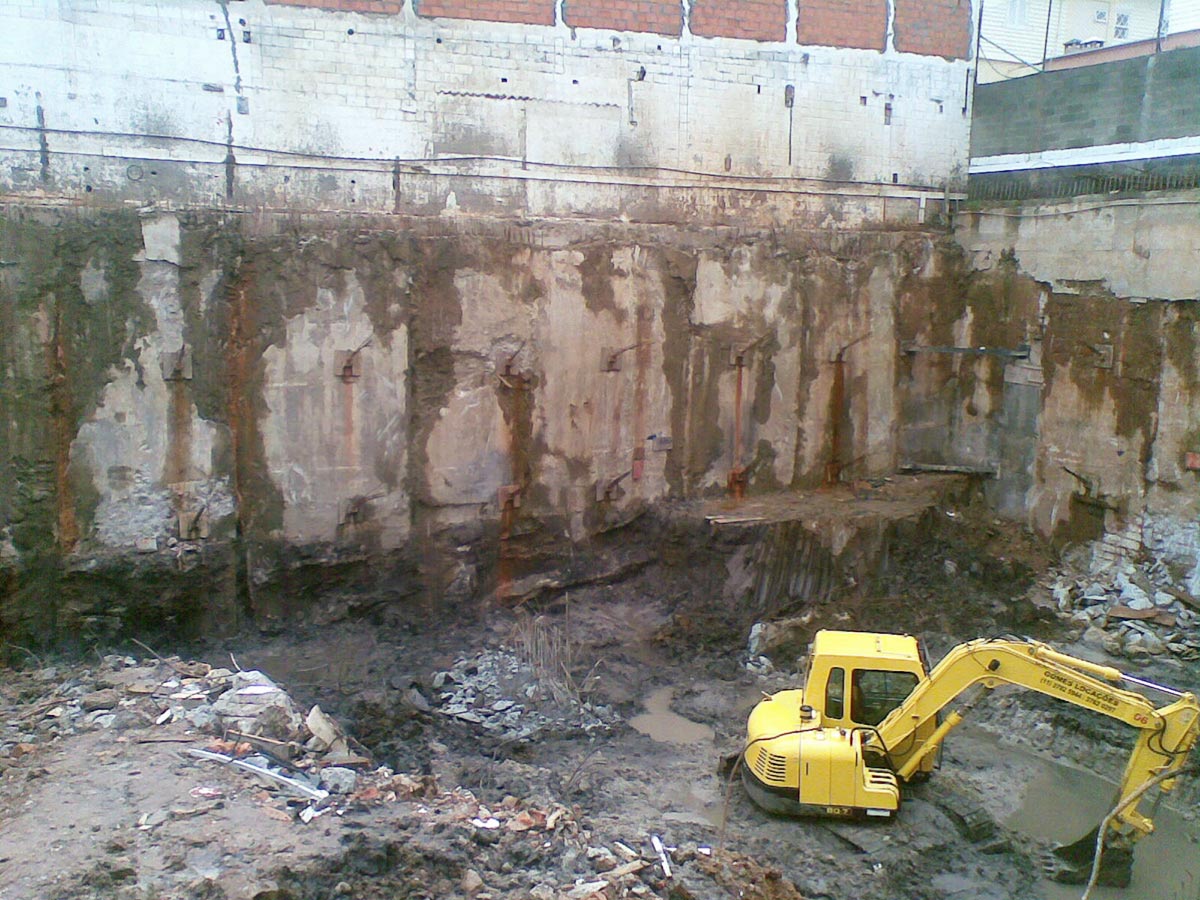 A parede diafragma consiste em se realizar, no subsolo, um muro vertical de profundidades e espessuras variáveis, constituídos de painéis elementares alternados ou sucessivos, e aptos a absorver cargas axiais, empuxos horizontais e momentos fletores.A parede poderá ter função estática ou de interceptação hidráulica, podendo ser constituída de concreto simples ou armado, conforme o escopo a que se destinar.“Quando queremos fazer escavação de um terreno, mas temos muita água superficial, uma das soluções é recorrer à parede diafragma.Esta é uma tecnologia de contenção de solos normalmente associada a tirantes. A parede diafragma consiste em se realizar, no subsolo, um muro vertical de profundidades e espessuras variáveis, constituídos de painéis elementares alternados ou sucessivos, e aptos a absorver cargas axiais, empuxos horizontais e momentos fletores.No entanto, nem sempre as condições de resistência do solo e de recuo de terreno em relação a construções vizinhas permite o uso de tirantes. Existem três tipos de parede diafragma: a de concreto pré-moldado, a de concreto moldado in loco e a parede diafragma plástica, utilizada para impermeabilização. A parede plástica é composta de uma mistura de bentonita e cimento, formando uma argamassa impermeável que tem como objetivo evitar a percolação horizontal da água no terreno.” (Engenheiro na WEB)
